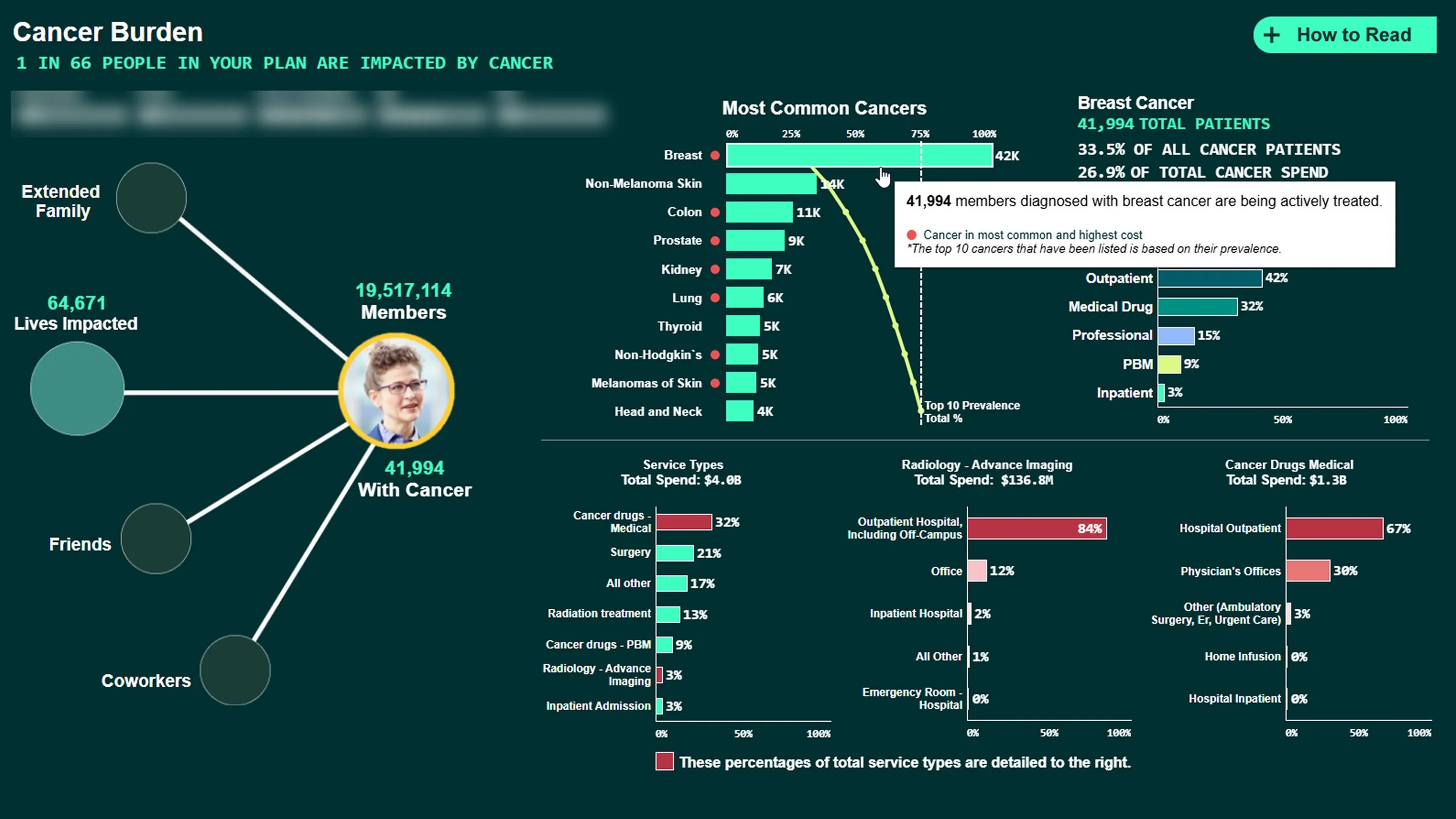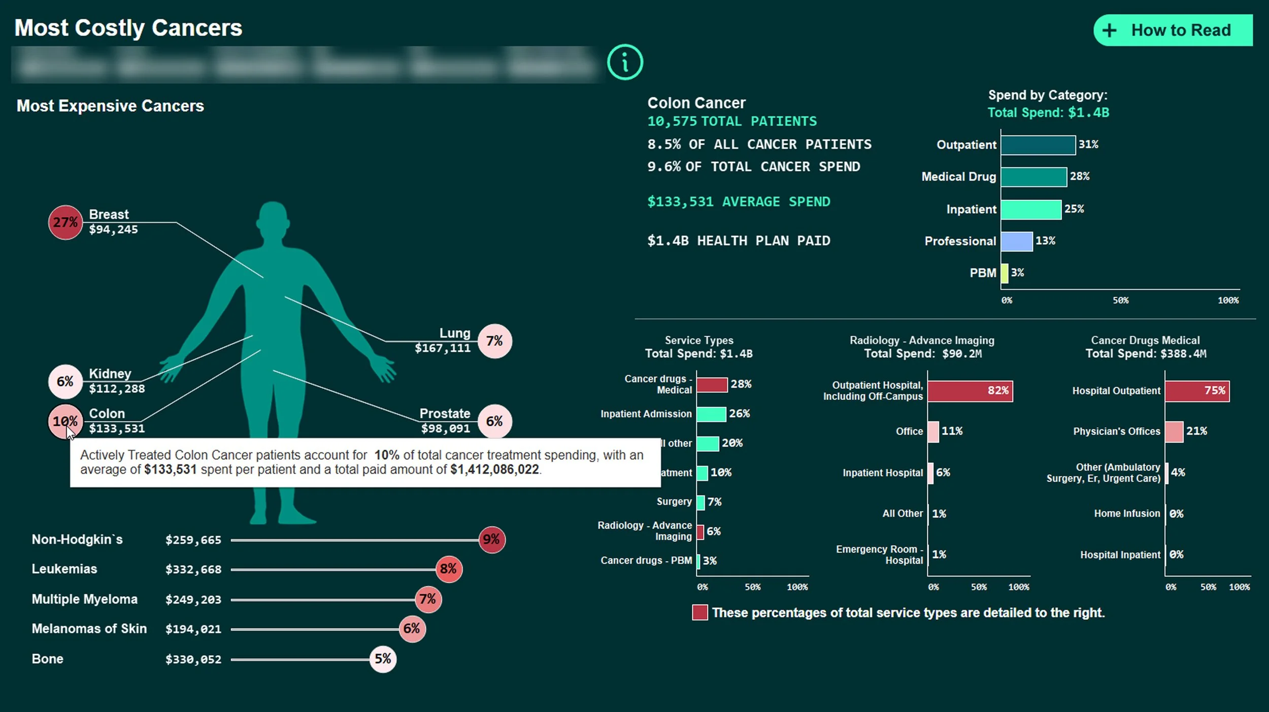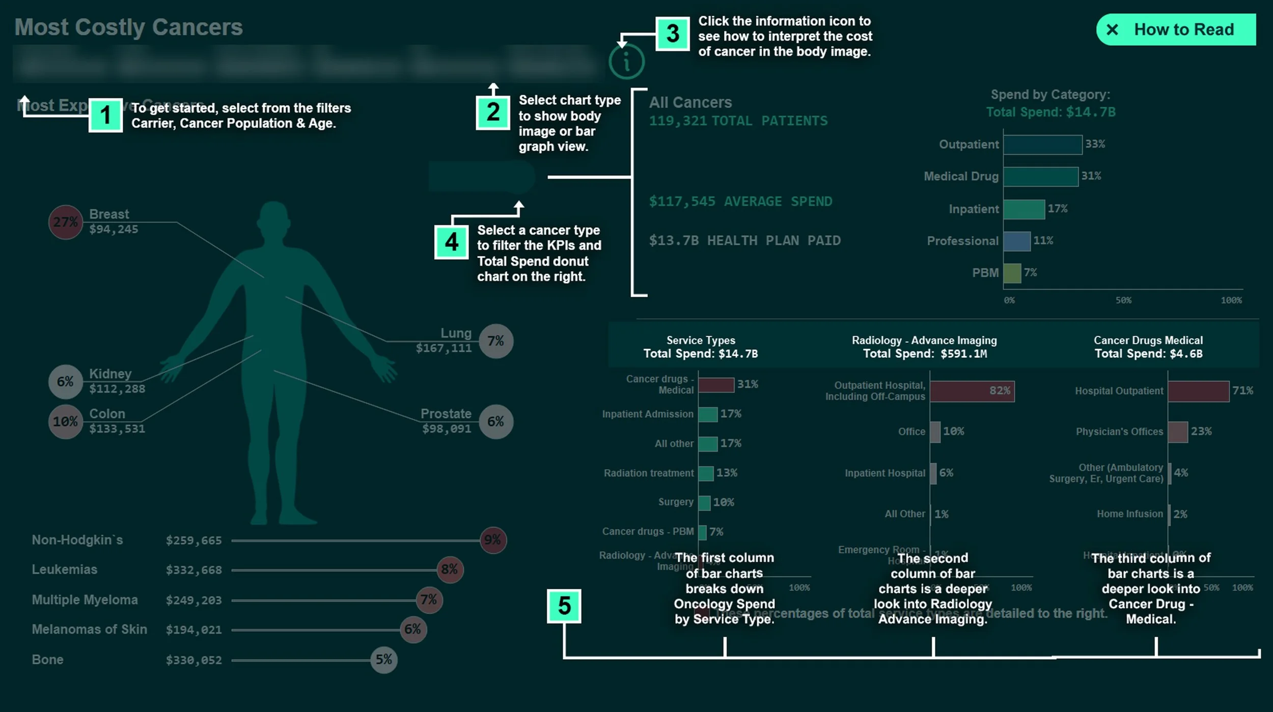 Interactive features to enhance usability and engagement such as, a “How to Read” button offers guided context, while dynamic zone visibility lets users explore body imagery in detail. Additional pop-up text elements bring cancer-specific data to life when selected—making complex information approachable and intuitive.